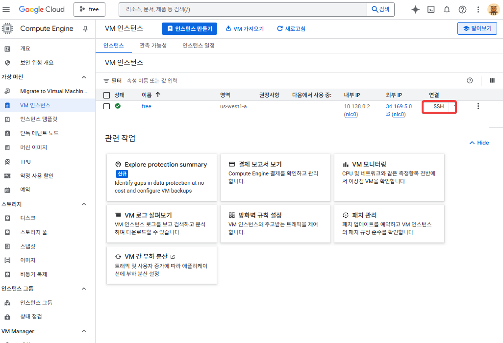 10단계: VM 인스턴스 목록 확인 및 SSH 접속